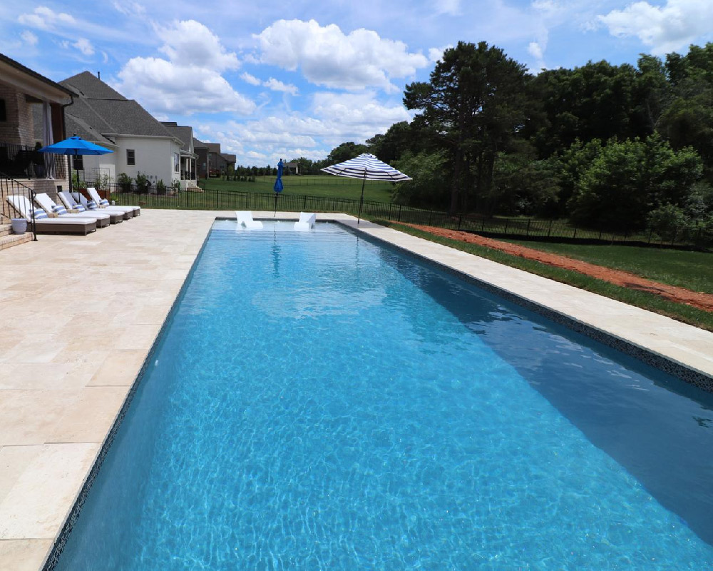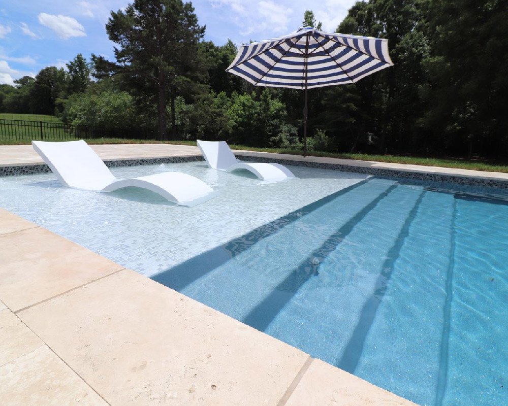 My Favorite Pool Builder introduces the Oceanside Beach, currently San Juan Pools’ largest beach pool! This colossal 16′ x 45′ Oceanside Beach pool sports a 6′ x 16′ Beach area ready for as many swimmers and sun bathers as you can line up! The Oceanside beach pool has a very spacious swim area and is perfect size for all the swimming pool activities and games and the beach is always ready for spectators!