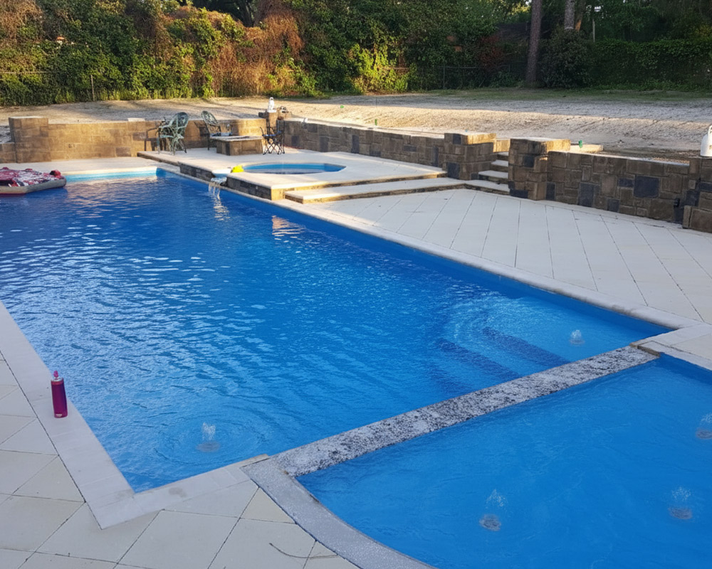 The perfect addition to any San Juan Pool that needs a spill over tanning area. A spill over tanning ledge is a modular unit you can add as a spill over tanning beach area along the side of any San Juan pool model. Tanning Ledges are comfortable areas to hang out, play with small children, or just hang out and catch some rays.