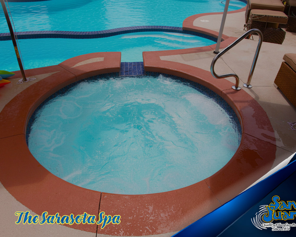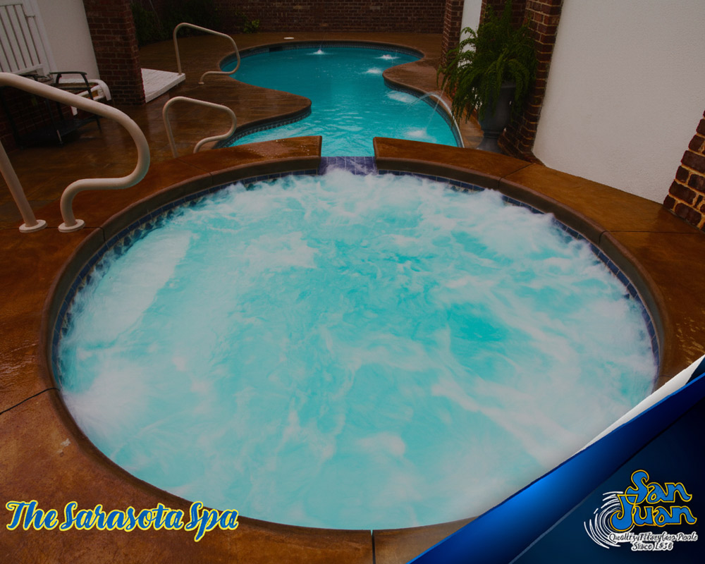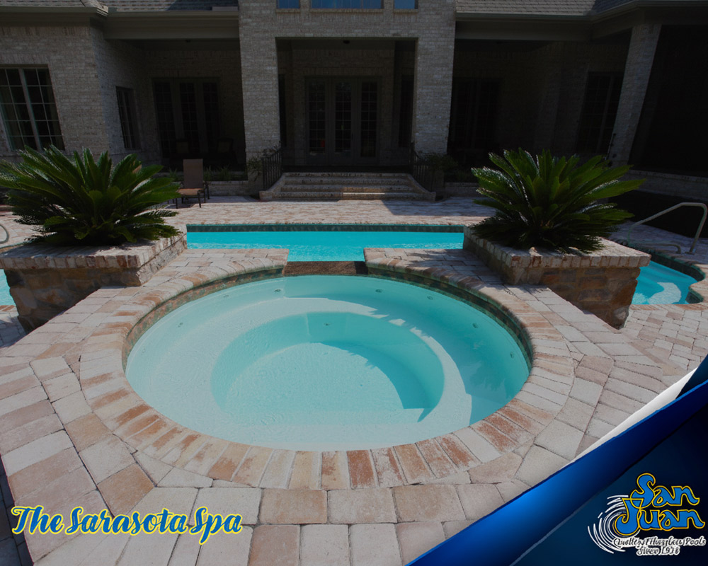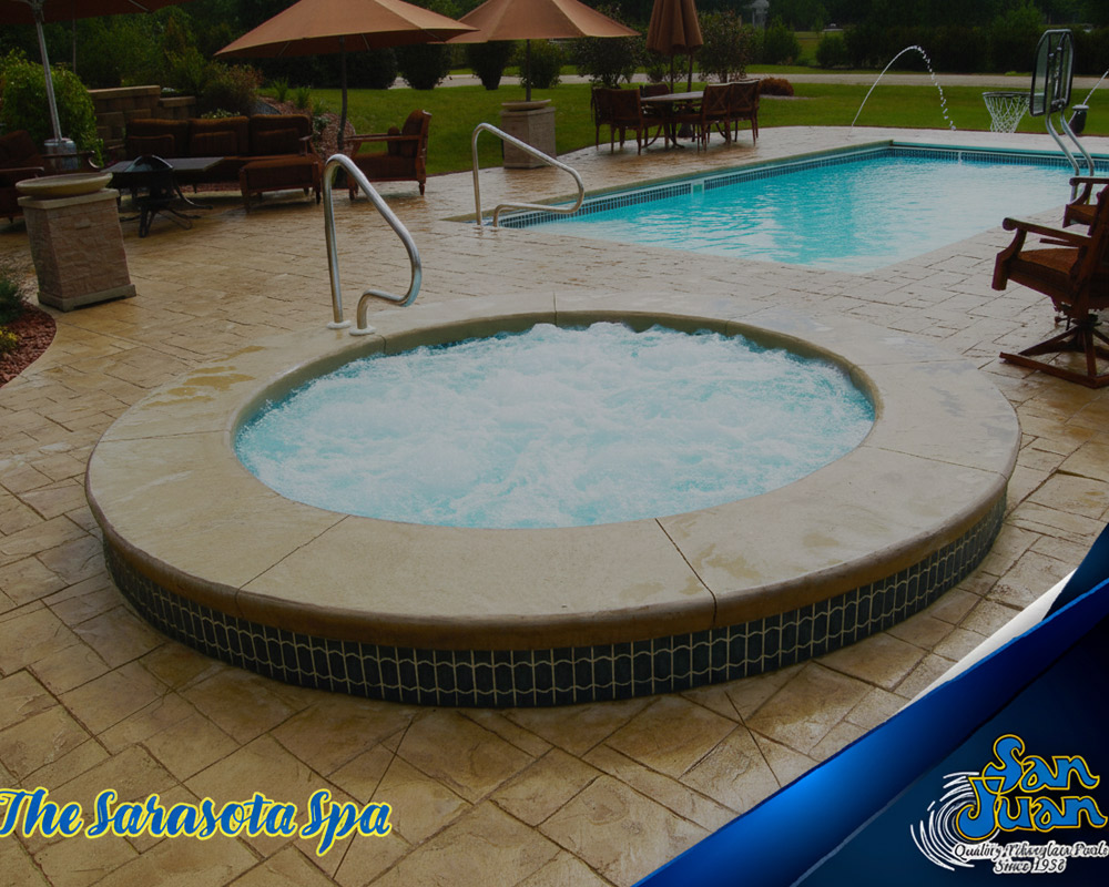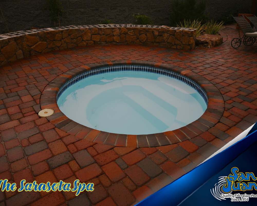 The Sarasota Spa is the perfect addition to any of our fiberglass swimming pools. With only 54 SQFT of surface area, this round fiberglass spa fits into any backyard space with minimal excavation. In addition to its round design, the Sarasota spa is large enough to comfortably hold up to 6-8 bathers. This classic design has a curved bench that runs all the way around its curved walls.